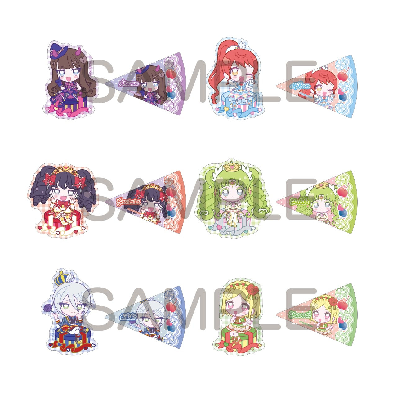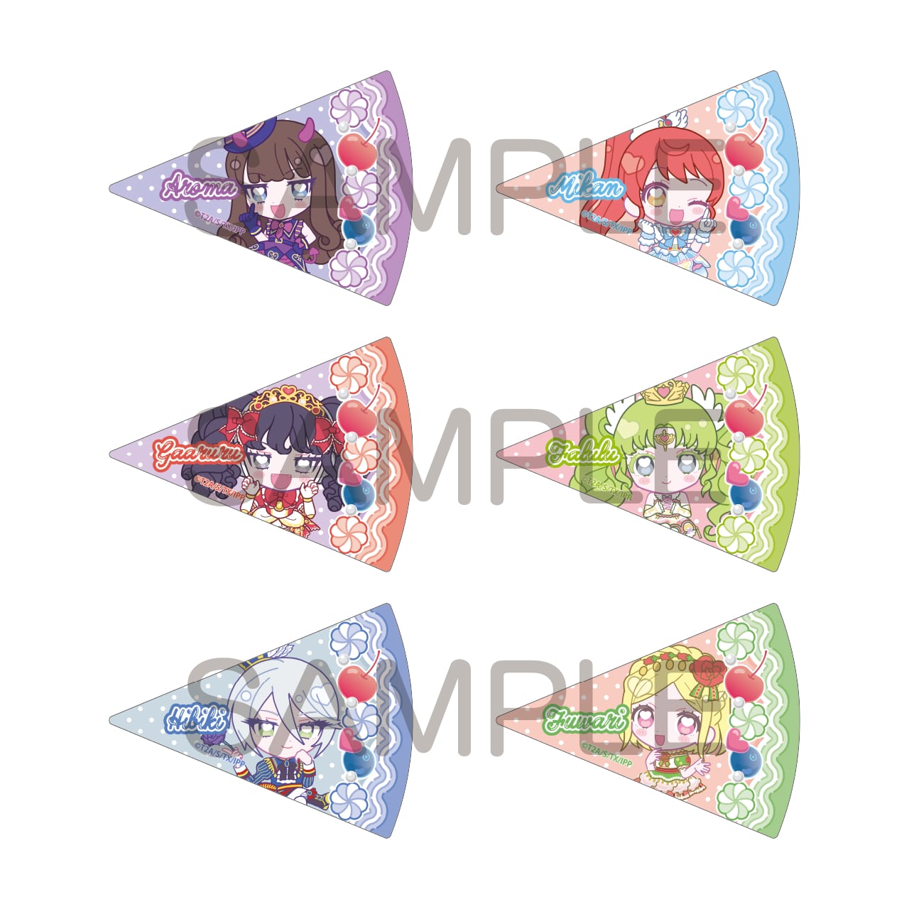 アイドルごとにダイカットデザインのステッカーかケーキ型のデザインのステッカーのいずれかが封入されております!