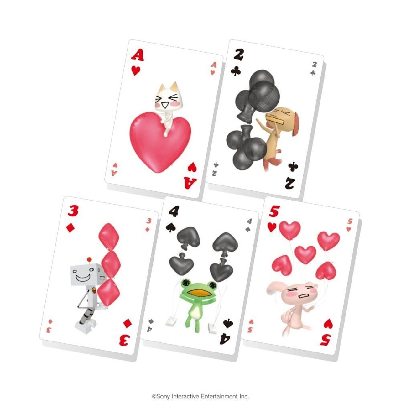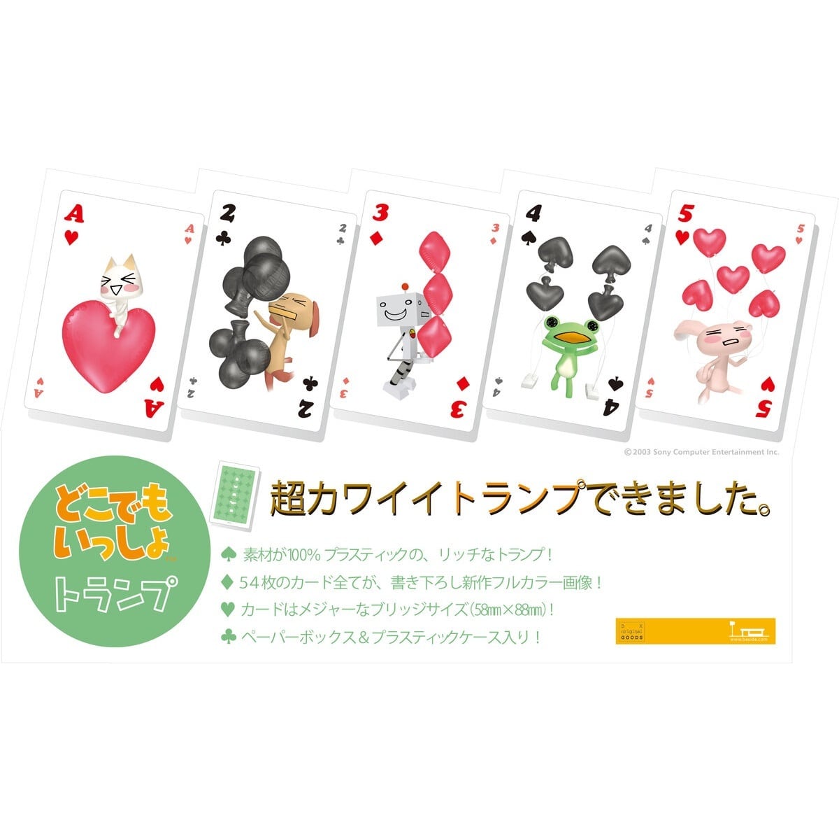 どこでもいっしょより、この商品の為だけに書き下ろされた、スートをモチーフにした風船とポケピ達が戯れる楽しい絵柄のトランプができました!