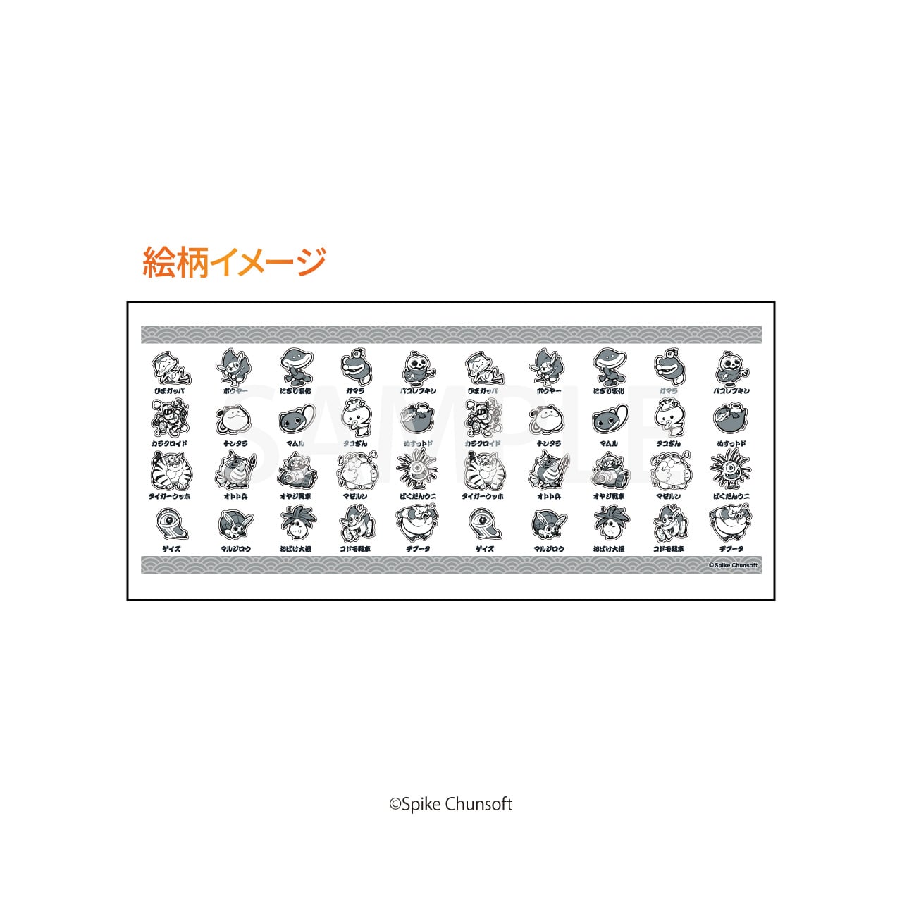長谷川薫氏の描いたモンスター大集合の総柄デザイン。
